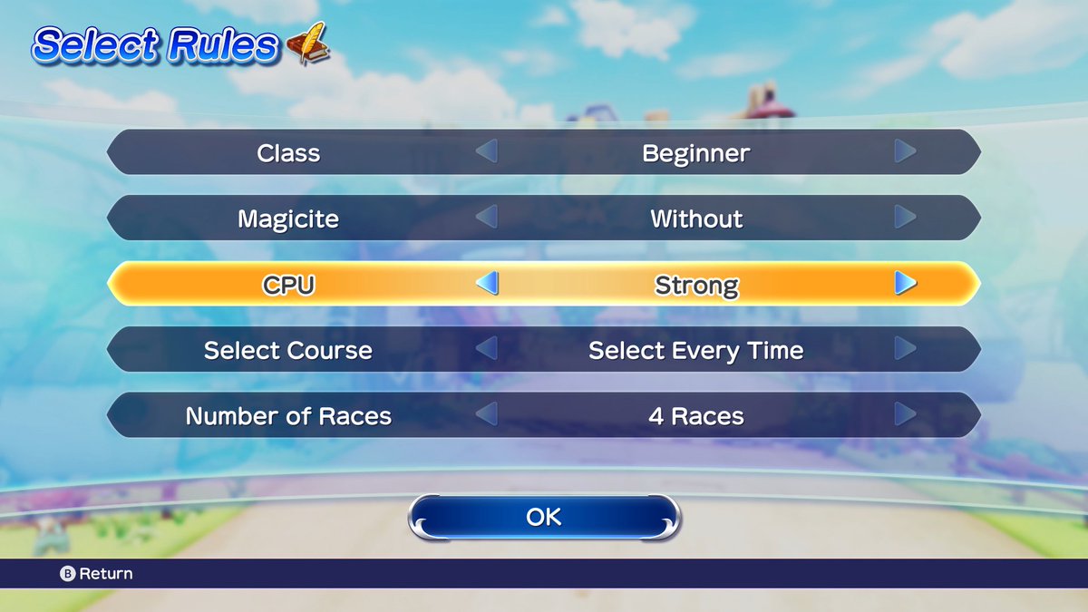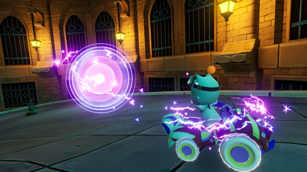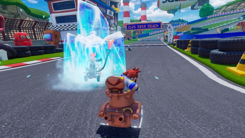 Cominciando dal gameplay, il sistema di controllo è quello classico dei racing arcade, ovvero con A si accelera, con B si frena mentre con il tasto dorsale destro (R) si derapa con conseguente innesco del mini turbo. Con il tasto dorsale laterale L, invece, il giocatore può lanciare oggetti per rendere la corsa più complicata agli altri gareggianti. Sulla qualità dei controlli e della difficoltà di comandi dei personaggi, non abbiamo degli input precisi e naturali come la controparte mariesca. Beninteso, la qualità è comunque discreta, non è perfetta ma si può comandare il proprio personaggio senza troppe difficoltà. Il controllo della vettura è come se fosse più diretto, senza sfumature di velocità e, complessivamente, meno raffinato. La derapata è, invece, la stessa di Mario Kart, suddivisa in tre livelli di mini turbo. Maggiore sarà la tenuta in curva, maggiore sarà il turbo ottenuto. Sin qui, nulla di nuovo. Quando la vettura va fuori pista, la stessa rallenta fortemente, parimenti anche quando si incontra un ostacolo o si è colpiti da un’arma. La perdita di velocità è quasi esagerata in base al colpo inferto, e non varia per qualsiasi ostruzione capiti al nostro veicolo. In poche parole, il rallentamento del veicolo a causa dei colpi inferti sono poco raffinati, quasi repentini e spesso anche fin troppo punitivi.