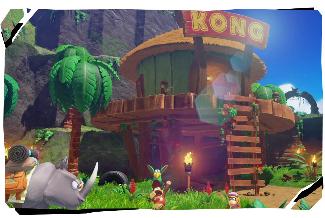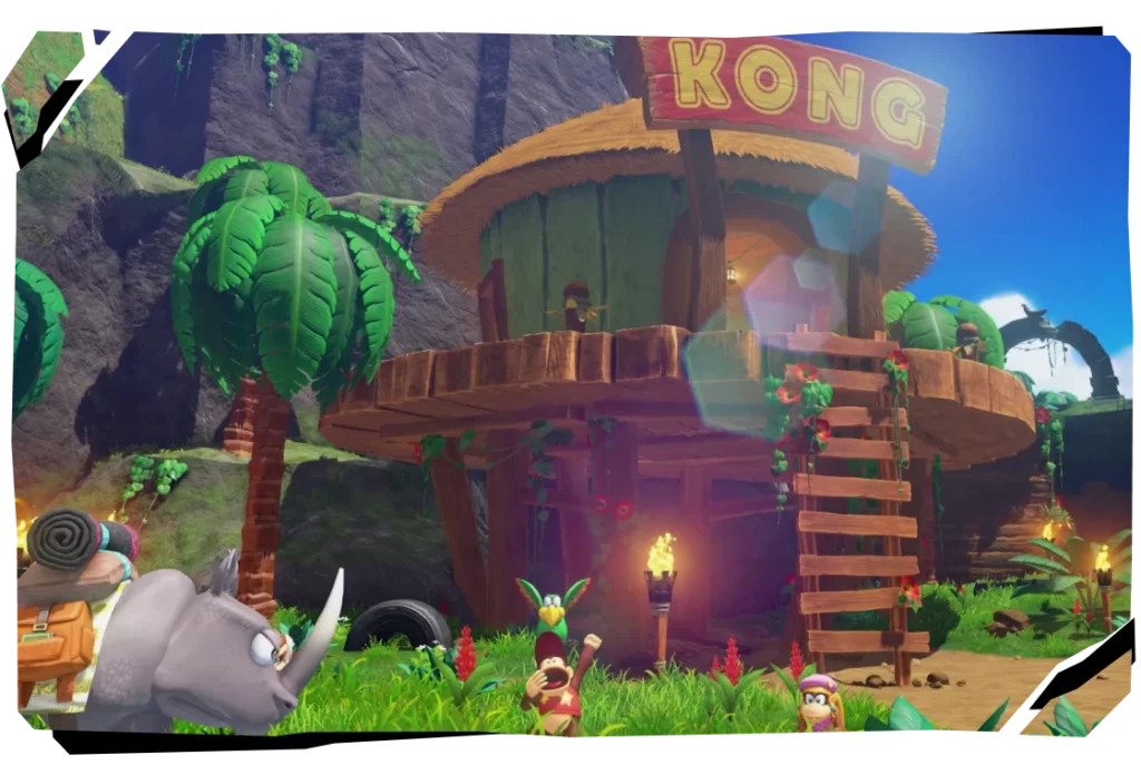 Il titolo suggerirebbe due novità distinte. Da una parte, l’Isola DK è un nuovo livello situato in superficie. Un’operazione fattore nostalgia che, ammettiamo, è stata molto apprezzata dando quelle vibes alla Donkey Kong 64, di cui pure le musiche in sottofondo accompagnano questo nuovo stage. Presente nel livello la casa di DK o il galeone in Donkey Kong Country 2: Diddy’s Kong Quest. La cura dietro questo livello si vede ed è molto apprezzata per chi, come noi, conosciamo questi luoghi nostalgici nati a metà degli anni novanta su console che oggi oseremo chiamare archaiche. Il vero protagonista del contenuto aggiuntivo è piuttosto Caccia agli smeraldi, che va di per sé a fare da end-game al gioco base il quale, pur non andando a completare i contenuti già esaustivamente coperti con la nostra recensione, aggiunge quel tocco in più che invoglia a proseguire l’avventura di DK e della tredicennte Pauline.