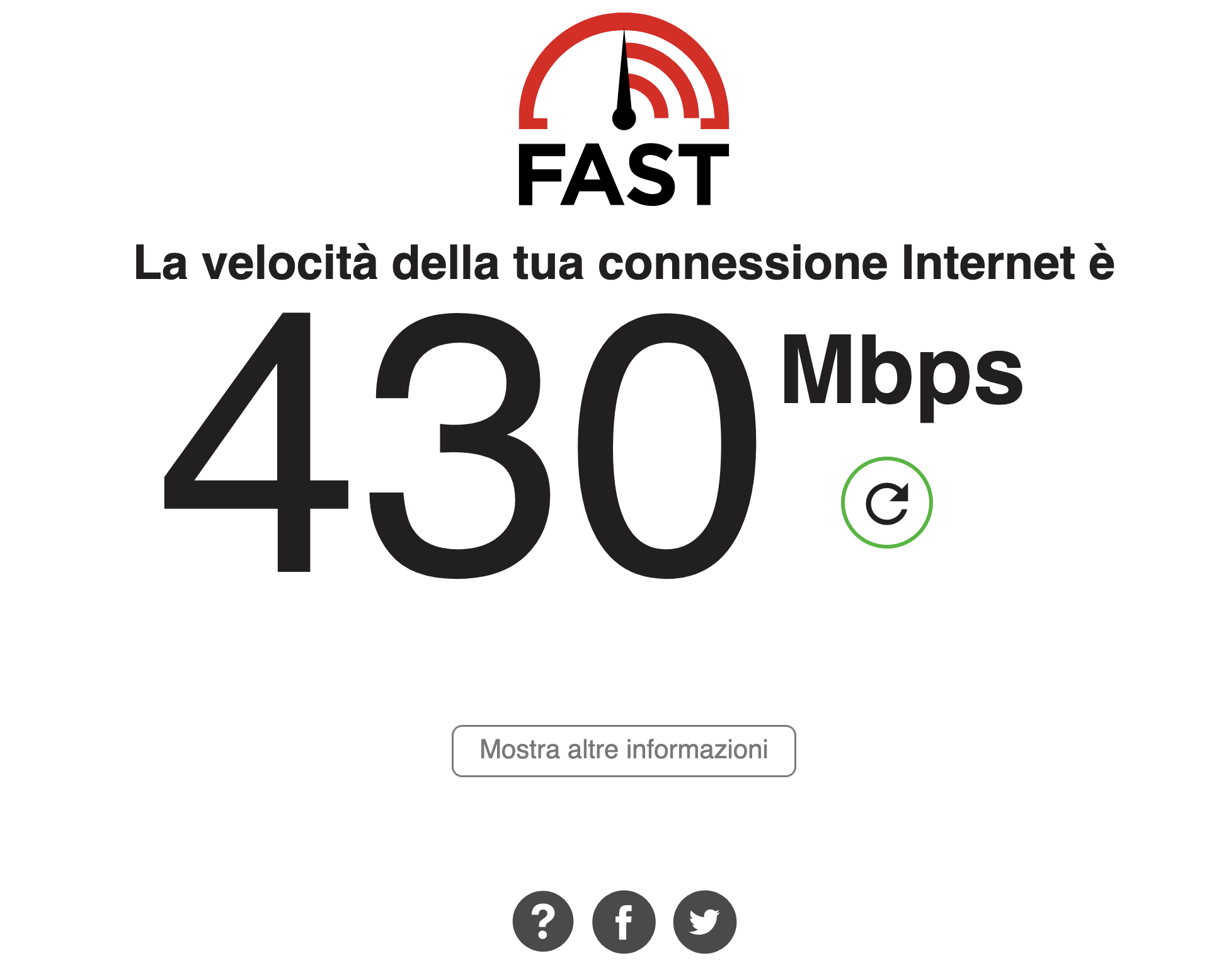 Per valutare le prestazioni reali, abbiamo prima stabilito una baseline delle capacità della rete utilizzando il FRITZ!Box 5590 Fiber connesso a una linea a 2.5 Gbps.