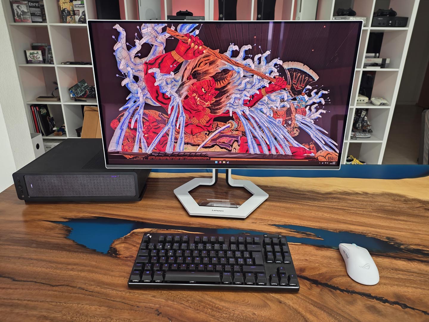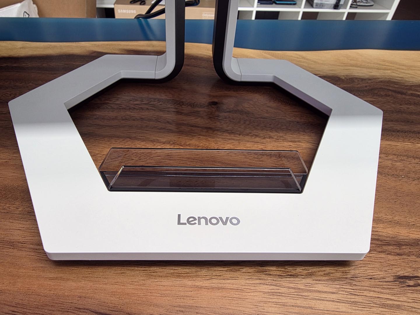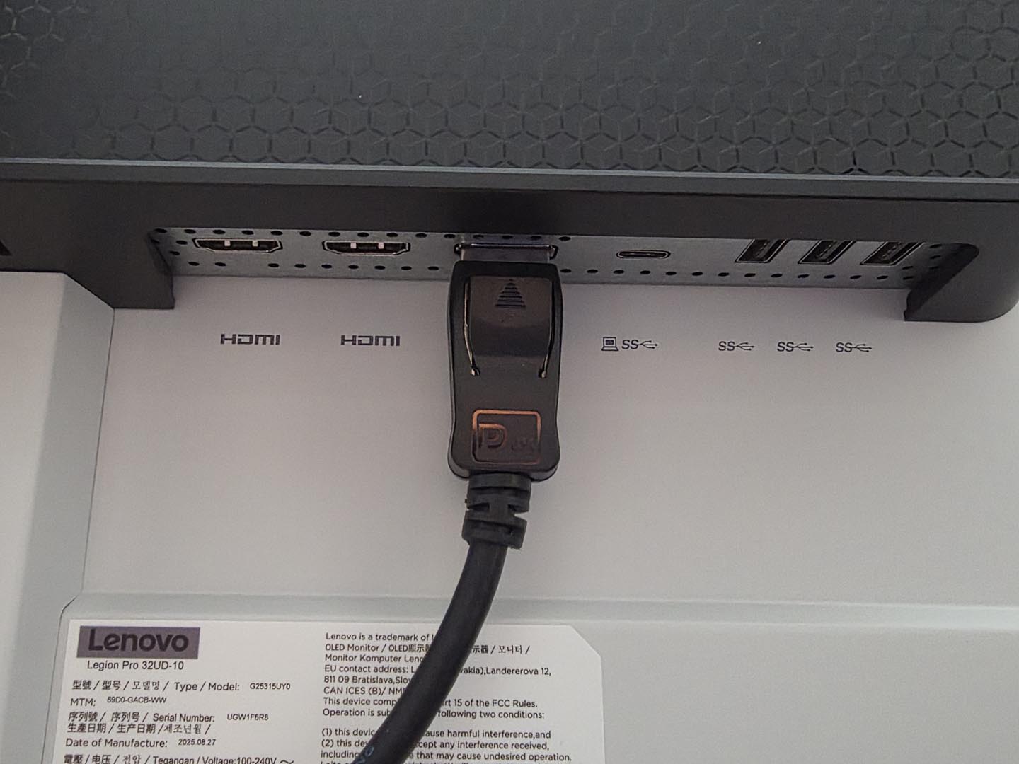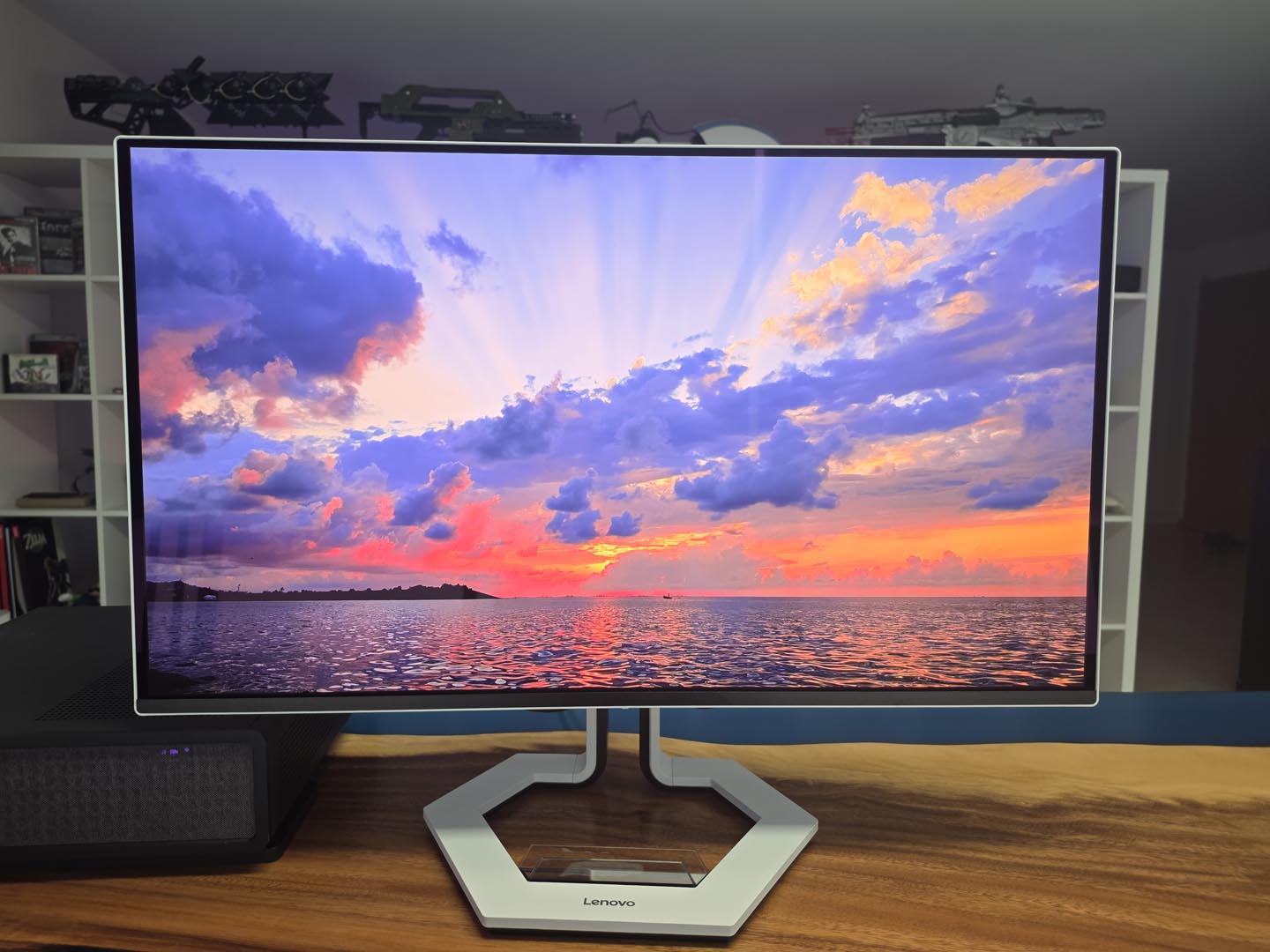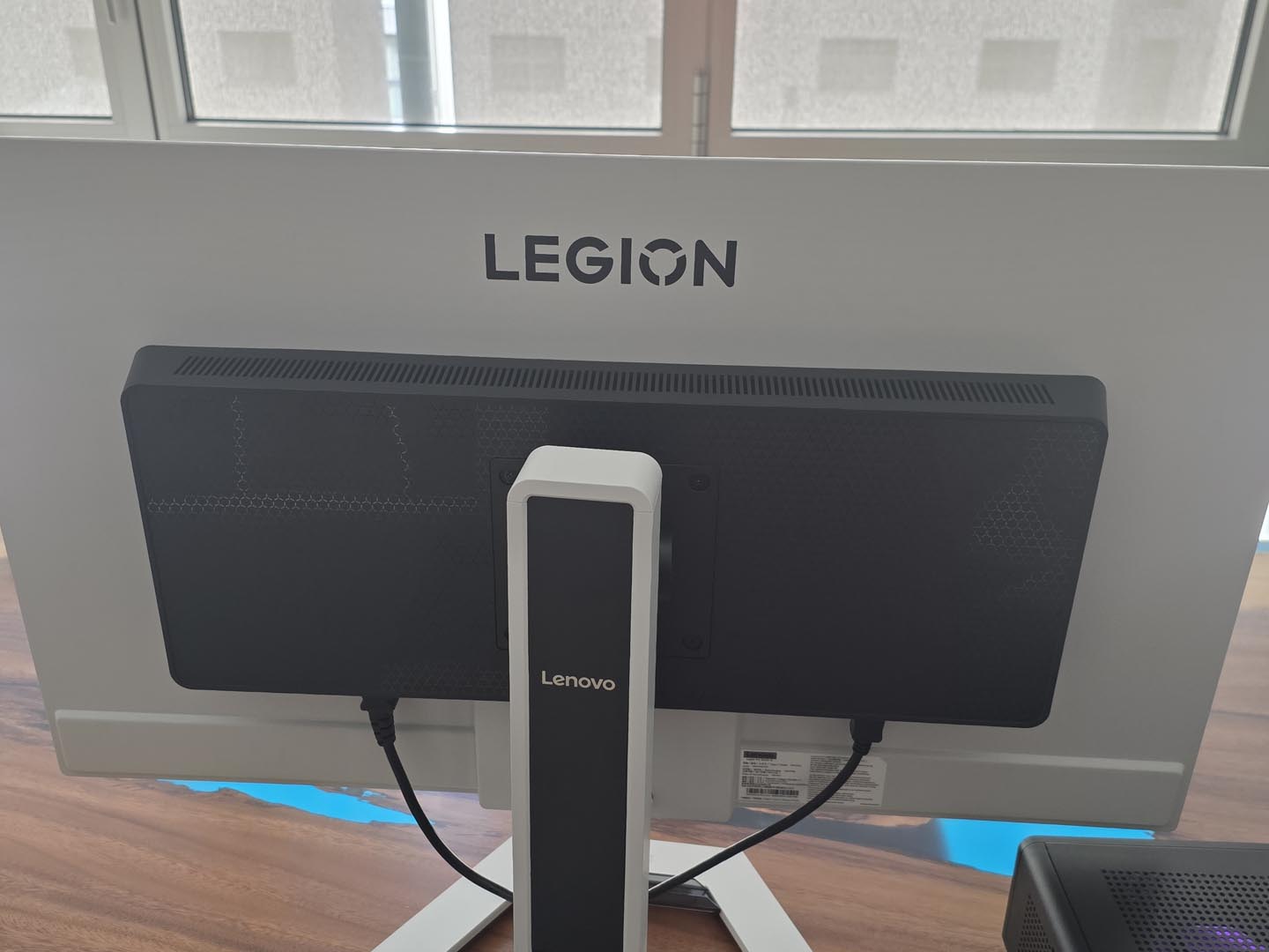 Esteticamente, il Legion Pro 32UD-10 è un colpo d’occhio. Il design bicolore bianco e nero è moderno, pulito e si distingue dalla massa di monitor neri senza cadere nell’estetica “gamer” pacchiana (niente RGB, e in questo caso ci sta bene). Il piedistallo, con la sua base esagonale, è piacevole e offre un’ergonomia completa (altezza, inclinazione, rotazione e pivot). Certo prende un certo spazio sulla scrivania, ma la sua forma permette comunque di organizzare bene l’area di lavoro. Lo slot integrato per il telefono è un gimmick carino ma decisamente superfluo (e comunque, volendo, si può staccare facilmetne). La vera, e forse unica, critica che muoviamo al design riguarda il pannello stesso. Per quanto magnifico, il pannello è molto riflettente. Se avete una finestra alle spalle o giocate in una stanza molto illuminata, i riflessi diurni saranno una presenza costante e fastidiosa.