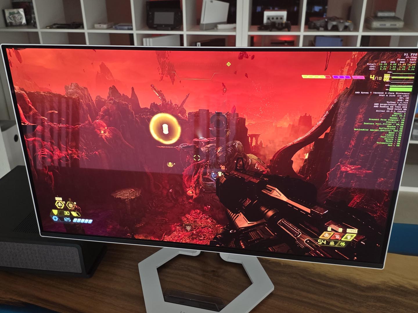 Con un refresh rate di 240 Hz e un tempo di risposta di 0.03 ms, l’esperienza di gioco è esattamente come ce l’aspettavamo: fluida, immediata e incredibilmente nitida. La certificazione ClearMR 13000 garantisce un’assenza quasi totale di motion blur, mentre il supporto a FreeSync Premium Pro e VESA Adaptive Sync elimina tearing e stuttering. Abbiamo messo alla prova il monitor con la nostra solita suite di titoli: Doom Eternal, The Witcher 3, Baldur’s Gate 3 e Ghost of Tsushima (tra gli altri). Sebbene i 240Hz non siano più quel “miracolo” che ci lasciava a bocca aperta qualche anno fa (ora sono quasi uno standard che ci aspettiamo come minimo a questo livello), il pannello si è comportato in modo encomiabile. L’input lag è impercettibile e la combinazione di 4K, colori OLED e alta frequenza d’aggiornamento rende ogni sessione di gioco un vero spettacolo.