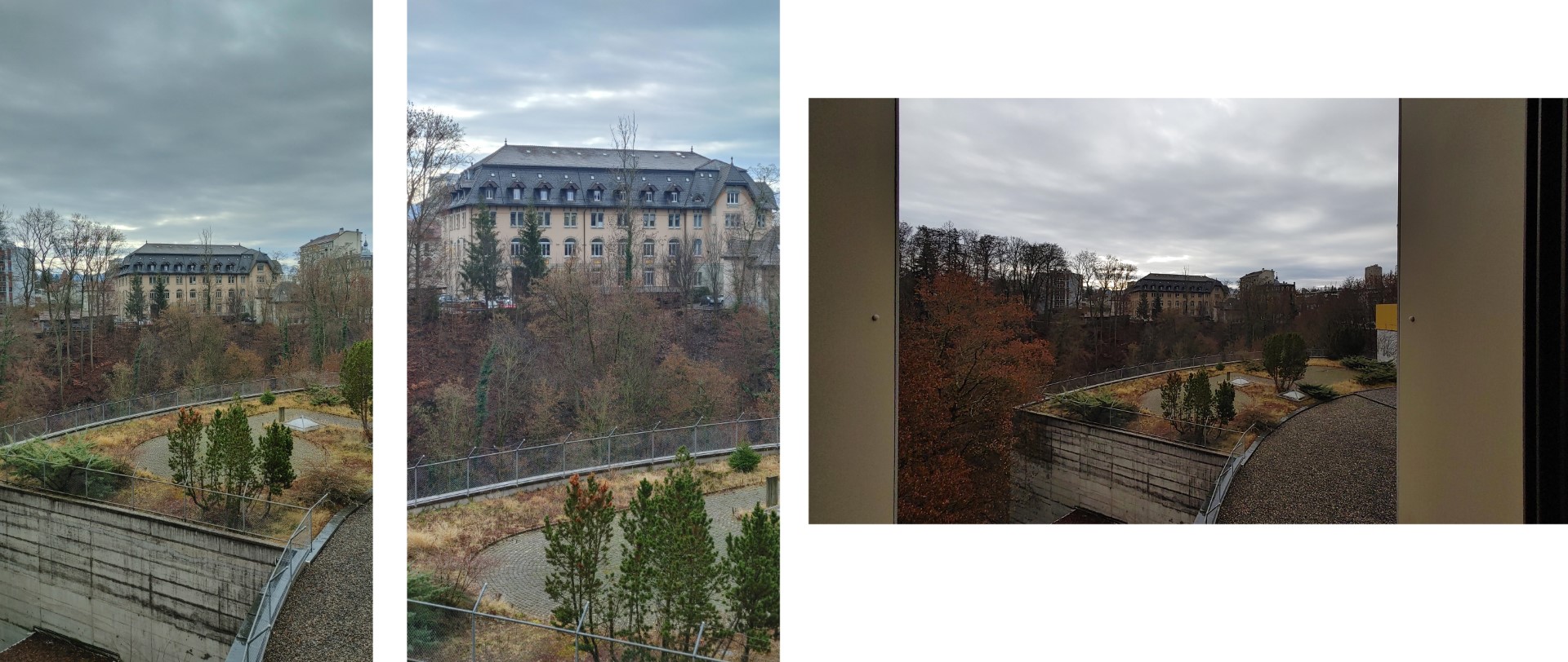 Le performances fotografiche sono adeguate. Nonostante la grande quantità di megapixel delle fotocamere, i colori sono slavati e abbiamo notato perdita di dettaglio nelle fotografie. Wing ha una configurazione tutta particolare: sul retro troviamo un obiettivo primario e le due wide lens. C’è ovviamente un motivo: uno degli obiettivi ultra-wide opera in modalità base e l’altro si attiva in modalità girevole. In pratica, è un po’ un disastro. Qua sotto trovate una foto a zoom normale, una a 2X e una in “modalità Wing”. Stesso luogo, stessa luce, stesso tutto.