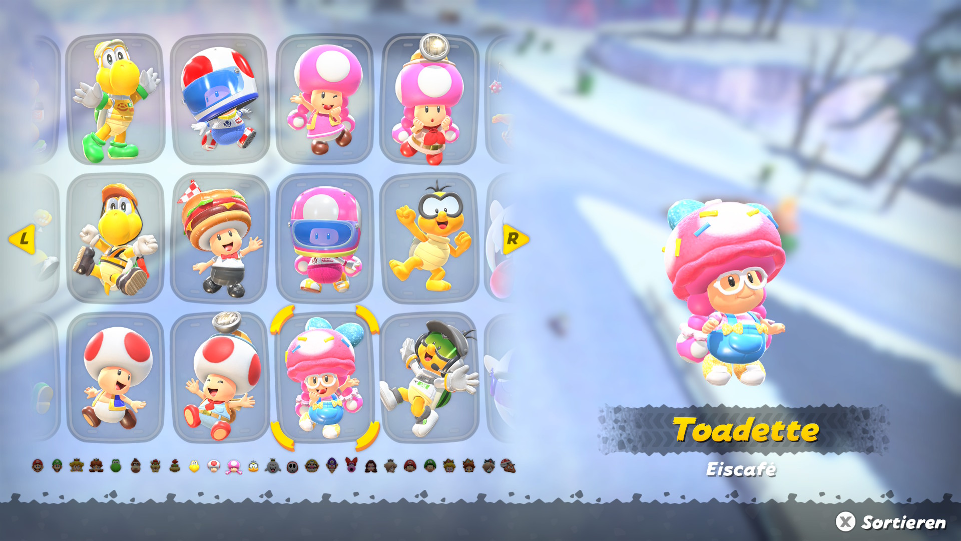 La Corsa libera è la modalità che ci ha suscito più curiosità dai trailer di reveal e presso la prova di Berlino alla Nintendo Switch 2 Experience (qui il nostro articolo). Dal menù della modalità basta premere+ per entrare nella vasta mappa di gioco e spostarsi fra i tracciati. L’utente potrà facilmente cambiare personaggio e Kart e svolgere delle piccole missioni presenti nella mappa. Da una parte, vi sono varie attività da fare e l’esplorazione non è mai noiosa, sbloccando sticker o nuovi outfit dei personaggi. Parentesi personaggi, questa versione ne offre tantissimi tra cui scegliere, ognuno anche con differenti stili di indumenti che si sbloccano raccogliendo dei sacchetti di Fastfood sparsi per la mappa, sbloccabili anche durante il Gran Premio. Nonostante l’ambiziosa introduzione di una mappa interconnessa in Mario Kart World, la modalità Corsa Libera, fulcro di questa nuova concezione open map, ci ha lasciato con qualche dubbio. Da una parte, l’idea di esplorare liberamente il Regno dei Funghi, passando da un tracciato all’altro senza caricamenti, è indubbiamente affascinante, dall’altra, tuttavia, la sua introduzione nel contesto complessivo del gioco sembra fine a sé stessa. Le attività proposte nella Corsa Libera, come la raccolta di monete blu o le sfide a tempo, pur offrendo una certa varietà, si traducono principalmente nello sblocco di sticker o outfit per i personaggi. Ci saremmo aspettati qualcosa di più profondo, che desse un senso di maggiore integrazione e progressione al di là di queste mini-missioni.