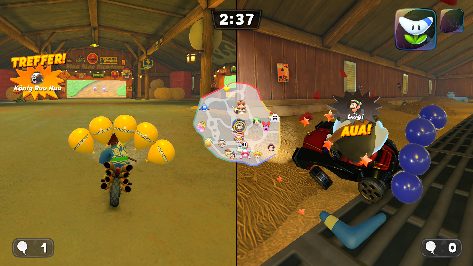 - Il Mega Fungo permette di diventare gigante, schiacciando gli avversari;