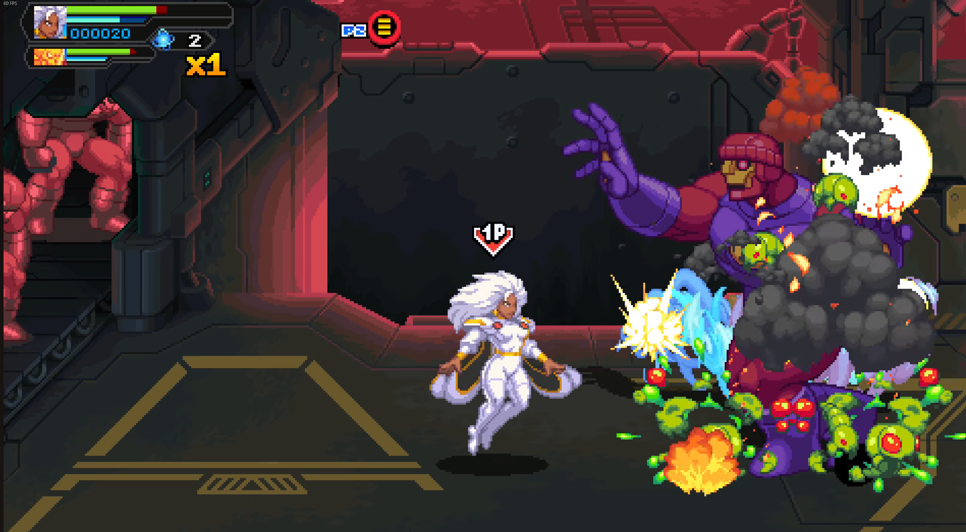 Ma i personaggi sono solo una parte del quadro: gli stage sono autentici protagonisti nella costruzione dell’atmosfera. Ogni livello è un piccolo palco che richiama ambientazioni molto diverse tra loro, dalle strade animate di New York alle dimensioni alternative dominate da colori innaturali e forme distorte, fino ai paesaggi cosmici pieni di tecnologia e rovine galattiche che richiamano direttamente la Negative Zone e altre location iconiche della Marvel. Gli sfondi non sono semplici decorazioni, ma diventano scenari vivi, densi di movimento, oggetti animati ed elementi narrativi che accompagnano il giocatore nell’avanzamento. È facile ritrovarsi a notare piccoli particolari: luci che si riflettono sulle superfici metalliche, dettagli architettonici ricchi, oggetti distrutti al passaggio dei nemici, o ancora personaggi non giocanti che reagiscono alla battaglia sullo schermo. La qualità della pixel art raggiunge il suo apice durante i combattimenti più concitati, quando il mix di animazioni, effetti visivi e palette dinamiche restituisce una sensazione di impatto che raramente si vede in produzioni retro-styled. Ogni colpo genera un feedback chiaro, leggibile e soddisfacente. Gli effetti delle super mosse, pur forse troppo frequenti ai fini del bilanciamento, sono spettacolari e riescono a trasmettere visivamente la potenza degli eroi senza mai risultare eccessivamente “rumorosi” sullo schermo. Un altro merito della direzione artistica è la capacità di mantenere leggibilità anche nei momenti più caotici. Nonostante la quantità di sprite, effetti particellari e animazioni, l’azione rimane quasi sempre chiara e comprensibile, segno di un lavoro attento sulle silhouette, sui contrasti e sulla fluidità generale delle animazioni.