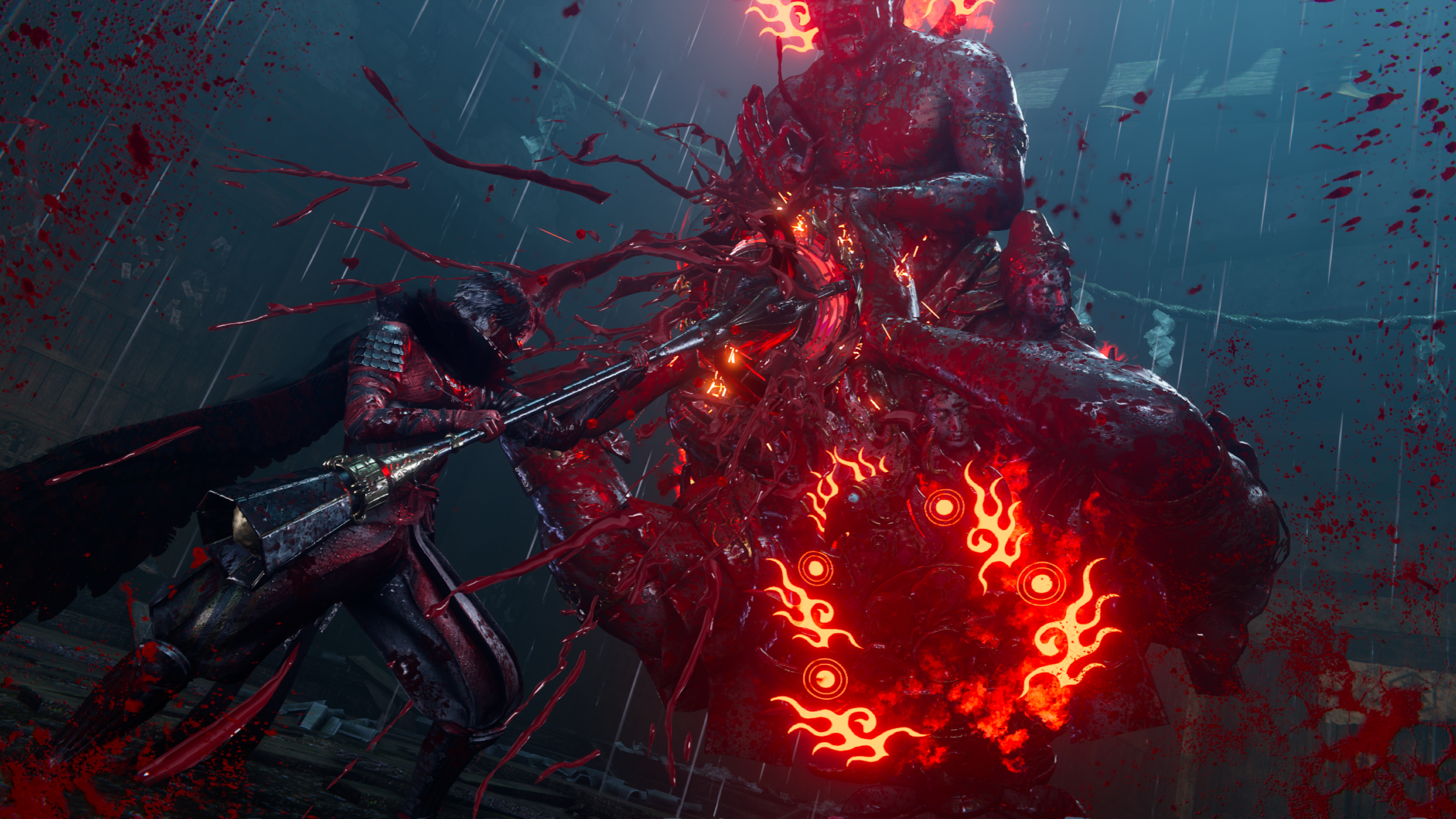 Ryu torna in un ruolo secondario, ma la sua presenza resta fondamentale. È il simbolo del passato, un maestro che non ha più bisogno di dimostrare nulla. Il suo stile rimane fedele ai precedenti Ninja Gaiden, ma con alcune modifiche che lo rendono più adattabile al ritmo moderno del gioco. Ryu non cambia arma come Yakumo, ma può switchare tra diversi Ninpō, i poteri elementali del ninja, ciascuno con funzioni offensive o difensive. Dal classico Art of the Inferno ai nuovi poteri legati alla Spada del Drago, ogni Ninpō ha una propria gestione energetica e può essere combinato con gli attacchi corpo a corpo per creare sequenze di combo ibride. Quando la barra delle abilità è piena, Ryu può scatenare La Spada del Drago Autentica che manda in frantumi le difese nemiche, proprio come Yakumo in forma di Corvo. La difesa è ora più raffinata che mai. Il giocatore può eseguire parate perfette, capaci di respingere gli attacchi e creare un’apertura per un contrattacco immediato, oppure schivate perfette, che se eseguite con il giusto tempismo permettono di rallentare per un istante il tempo e ribaltare la situazione a proprio favore. L’intero sistema è costruito sul ritmo e sulla precisione: sbagliare un tempismo può costare caro, ma padroneggiarlo trasforma ogni battaglia in una danza altamente scenografica. Le finisher, marchio di fabbrica della saga, tornano più violente che mai. Gli scontri sono sanguinosi, viscerali e ogni esecuzione è un atto coreografico di pura ferocia. I due Ninja non si limitano a sconfiggere: Annientano. Il nuovo non cancella l’eredità , Izuna Drop, Attacco della Rondine e Ghigliottina tornano modernizzati nelle animazioni e nel timing, ma riconoscibilissimi nella sensazione d’impatto. La progressione resta orientata all’abilità, non al numero: i Ninja Coin sbloccano nuove tecniche e varianti di combo; i Karma Points ampliano il kit delle singole armi, aggiungendo estensioni aeree, rotanti e caricate che cambiano davvero il modo di combattere. Il sistema, nel suo insieme, è un ponte tra due epoche: mantiene la complessità tecnica che ha reso celebre la serie e la innesta in una messa in scena frenetica, leggibile e spettacolare.