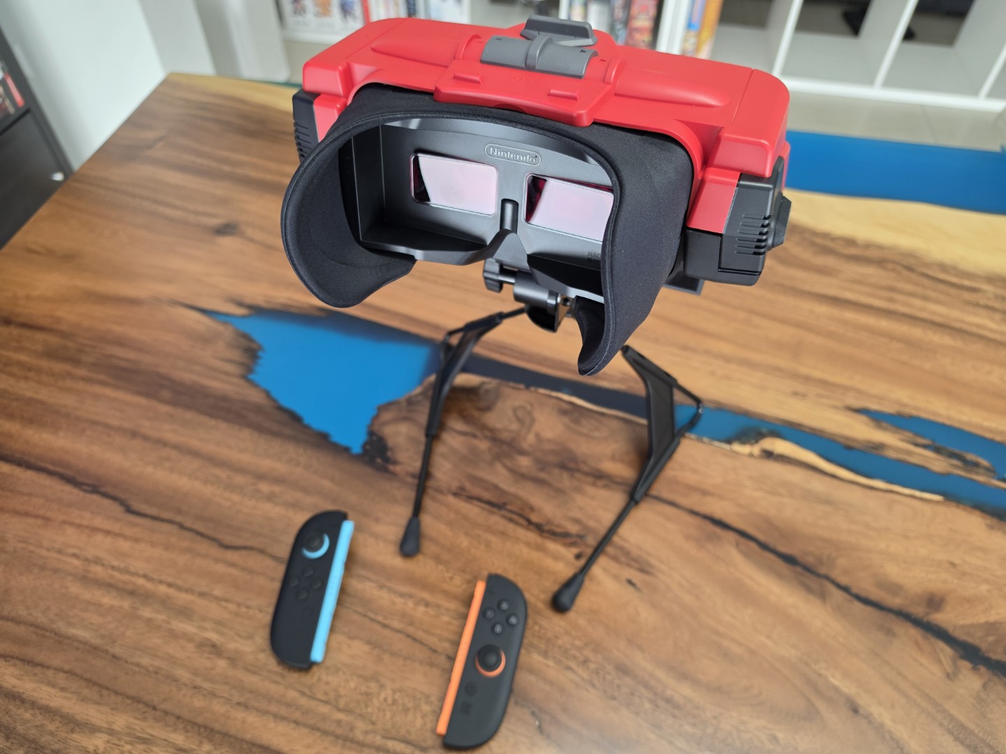 L’ergonomia rimane il vero elefante nella stanza, poiché Nintendo ha scelto di non correggere i peccati originali di trent’anni fa in nome della preservazione artistica. Il visore poggia su un solido treppiede metallico con piedini in gomma, ma la postura inchinata in avanti necessaria per guardare nelle lenti è rimasta scomoda come un tempo, causando rapidamente quel familiare dolore cervicale che molti veterani ricordano con terrore. L’oculare in schiuma è però molto più confortevole rispetto al passato e isola molto bene dalla luce ambientale, offrendo spazio sufficiente anche per chi indossa occhiali ingombranti (ma non troppo). Rimane tuttavia il fastidio di una user experience che richiede di estrarre fisicamente la console ogni volta che si desidera chiudere l’app, poiché i controlli touch sono inaccessibili una volta che la Switch è sigillato nel guscio.