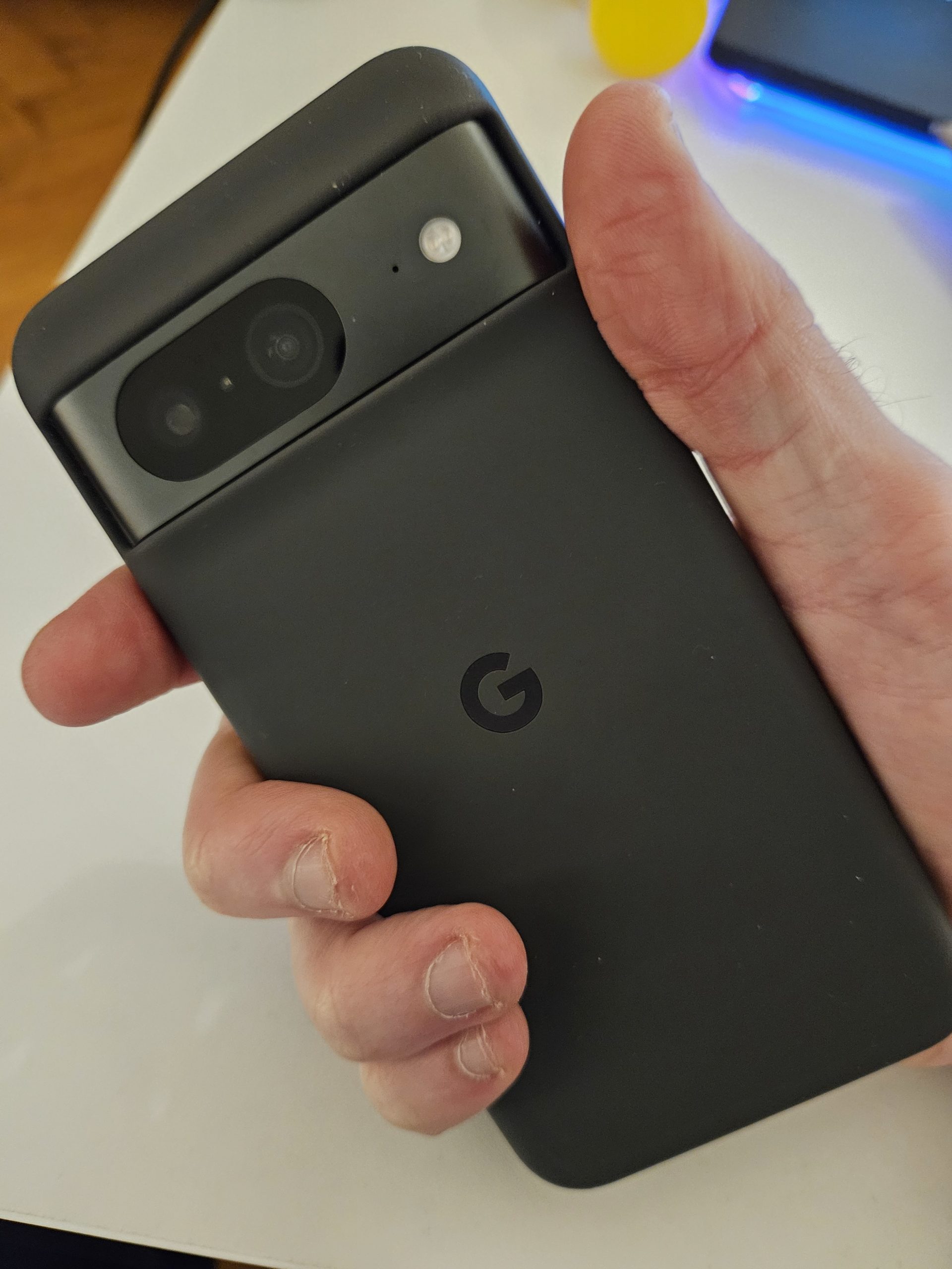 Il design di Pixel 8 riprende esattamente le stesse linee estetiche del predecessore ma, allo stesso tempo, lo smartphone trasmettere un touch and feel completamente diverso. Anzitutto, Pixel 8 ha una curvatura molto più ampia ai lati che lo rende più facile da impugnare in confronto alla precedente generazione. Pure gli angoli hanno un raggio maggiore e sono meno spigolosi, rendendo più comoda l’impugnatura sul lungo periodo. Complessivamente, Google ha ben ottimizzato le cornici (riducendole sensibilmente in confronto a Pixel 7); le dimensioni di Pixel 8 sono sensibilmente inferiori a Pixel 7, sia in larghezza che in altezza. Il Pixel 8, in effetti, è come già ribadito molto comodo da impugnare e rientra in quella categoria di smartphone “compatti” paragonabili a Galaxy S23 (Base), allo Xiaomi 13 o ai recenti Xperia V. Avendo sotto mano sia Pixel 8 che Galaxy S23, la cura del design di Pixel 8 rende quest’ultimo meno invidiabile rispetto all’attuale flagship della casa coreana. Per il resto, è immutato il design del reparto fotocamera posteriore, fedele a quello introdotto con Pixel 6 nel 2021. Infine, non manca la resistenza contro acqua e polvere (IP68), Gorilla glass victus per il vetro anteriore e “soli” 187 grammi di peso complessivo, che non disturbano nell’uso quotidiano, seppur superiori ai 168 grammi di Galaxy S23.