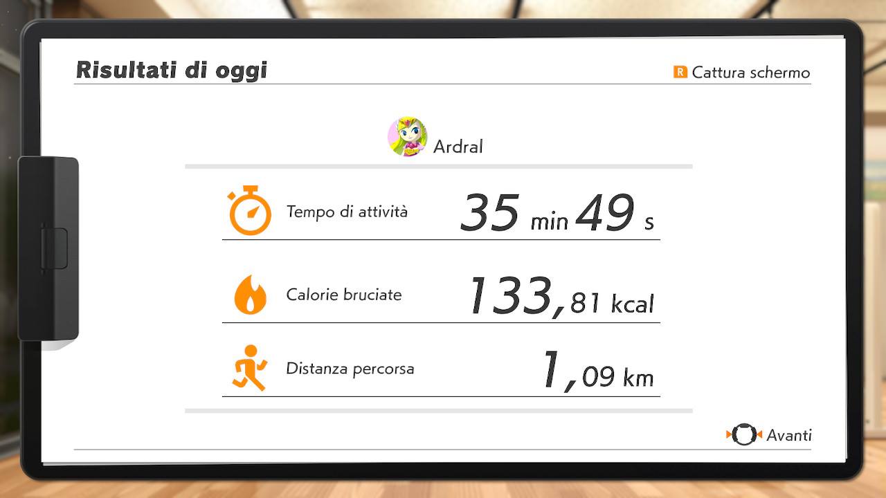 In sostanza, il livello di difficoltà dipende dalla discrezione del giocatore. Questa viene impostata con un quiz iniziale non appena si avvia il gioco, al quale il giocatore deve rispondere ad alcune domande relativamente le sue abitudini al fine di impostare il livello di allenamento. Più il livello di allenamento è alto e più è arduo portare a termine l’avventura ed affrontare le battaglie. Per darvi un’idea, essendo lo scrivente molto allenato e facendo parecchio movimento fisico (fra pole dance, pilates, calisthenic e nuoto), il livello di difficoltà impostato è quello massimo consentito dal gioco. Tale livello di allenamento prevede almeno 37 ripetizioni per ogni esercizio scelto (nelle battaglie), una pressione di una certa consistenza al Ring-con per superare alcuni ostacoli, skip più consistenti per superare le paludi / gradinate, mentre gli avversari avranno maggiori punti vita richiedendo almeno tre abilità per essere sconfitti. Dopo 40 minuti di gioco (tempo di movimento indicato sempre sullo schermo), lo scrivente ha sempre effettuato oltre 100 ripetizioni in parecchi esercizi, nonché corso per un paio di km (secondo il calcolo della fascia applicata sulla gamba). Ciò detto, se il livello di difficoltà è impostato su medio o facile, chiaramente si dovranno eseguire molto meno ripetizioni e il gioco sarà meno punitivo relativamente alla forza/impegno richiesto per superare un determinato ostacolo.