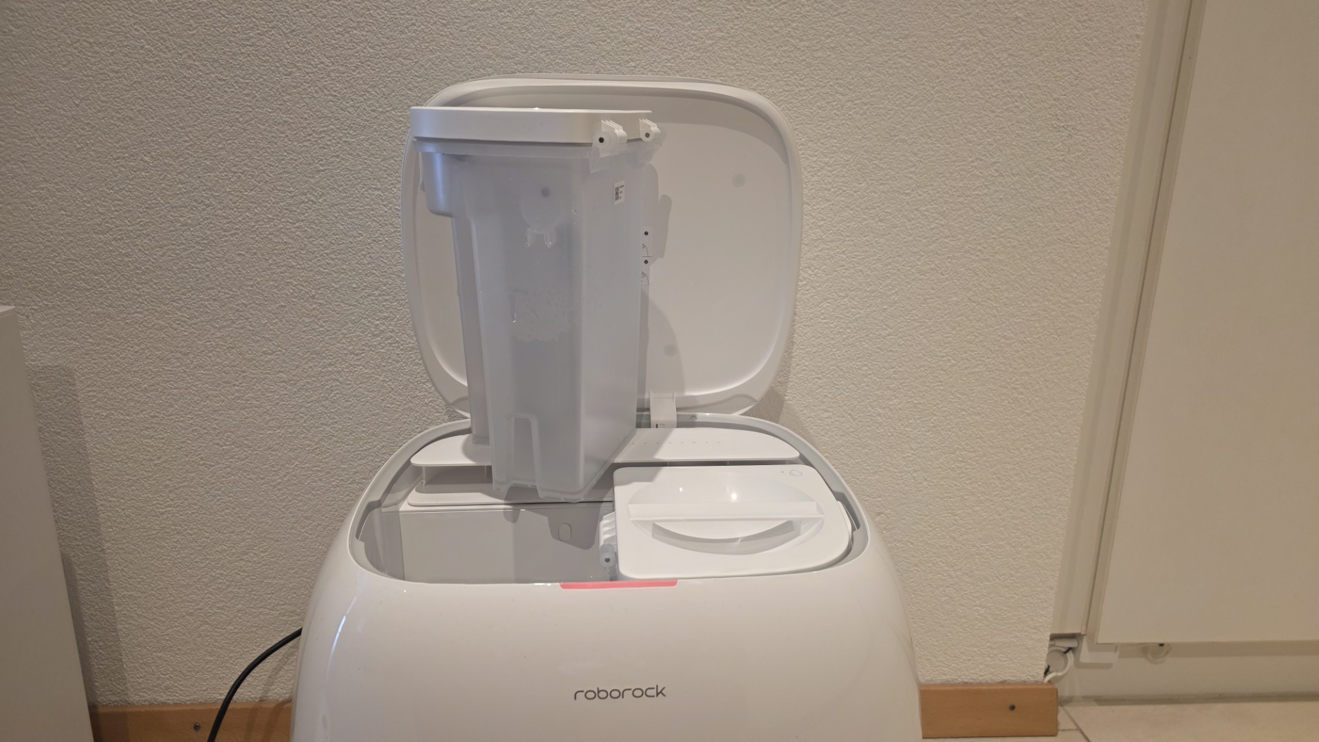 Abbiamo messo alla frusta il rullo con di tutto: caffè, popcorn, salsa di soia e persino macchie di ketchup. Il responso è chiaro: la pressione verso il basso di 15N (circa 1,5 kg di spinta reale sul pavimento) fa davvero la differenza sulle macchie secche, pulendo sensibilmente meglio anche del Dreame Aqua10 Roller, che finora era il nostro riferimento. Tuttavia, con le impostazioni di default abbiamo notato un po’ di “streaking” (le fastidiose strisce d’acqua). Per risolvere basta alzare il flusso d’acqua nell’app da 5 a almeno 20 su 30 per una copertura perfetta.