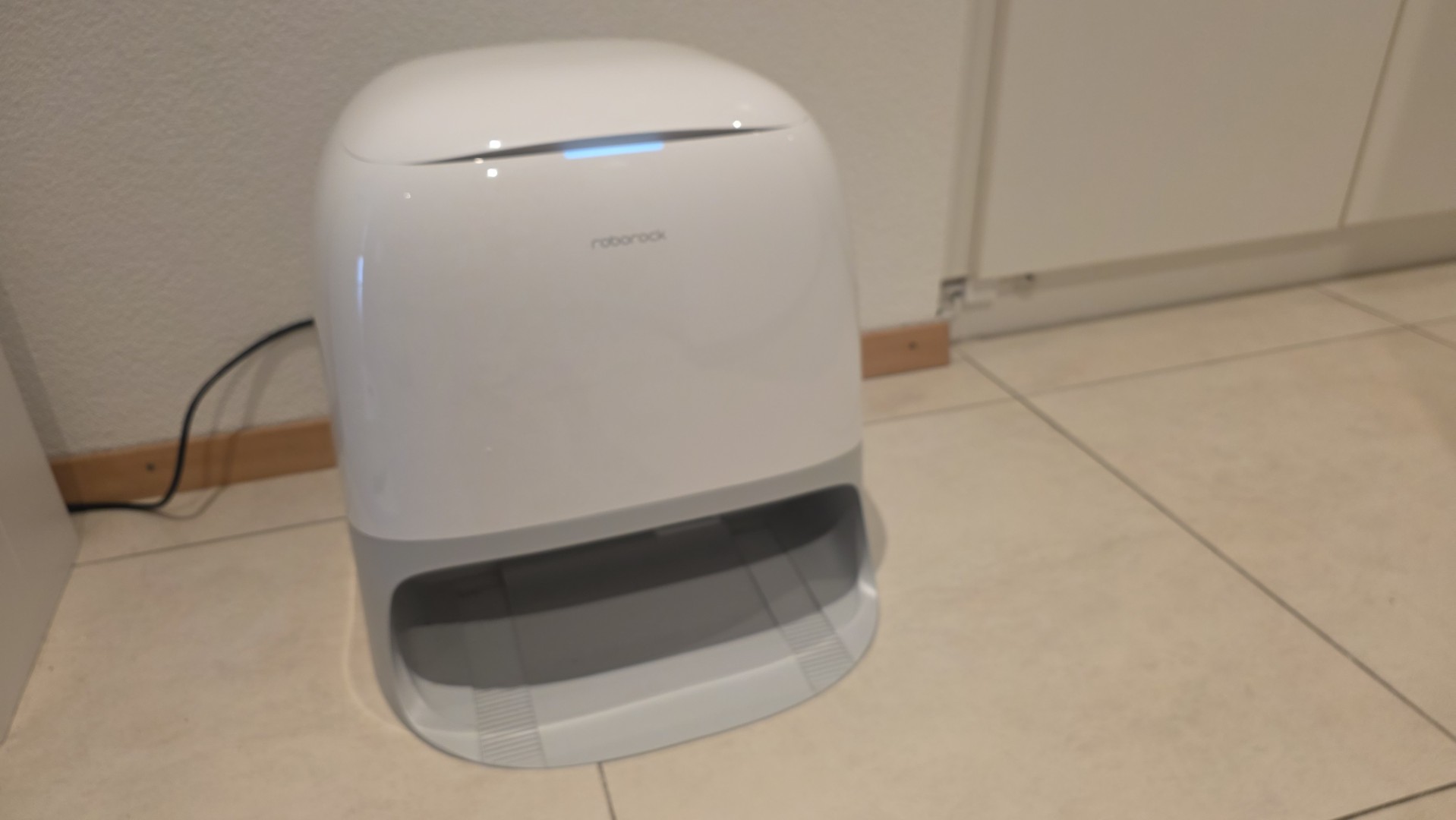 Il design è quanto di più Star Wars si sia visto ultimamente: un’unità bianca lucida che ricorda un casco da Stormtrooper, molto elegante e nemmeno troppo ingombrante nelle dimensioni della base (45 x 45 x 45 cm). Sotto il cofano troviamo la consueta potenza bruta di Roborock: 20’000 Pa di aspirazione HyperForce, che nei nostri test ha letteralmente sbranato popocorn, polvere accumulata sotto il letto e succo di frutta sul pavimento.