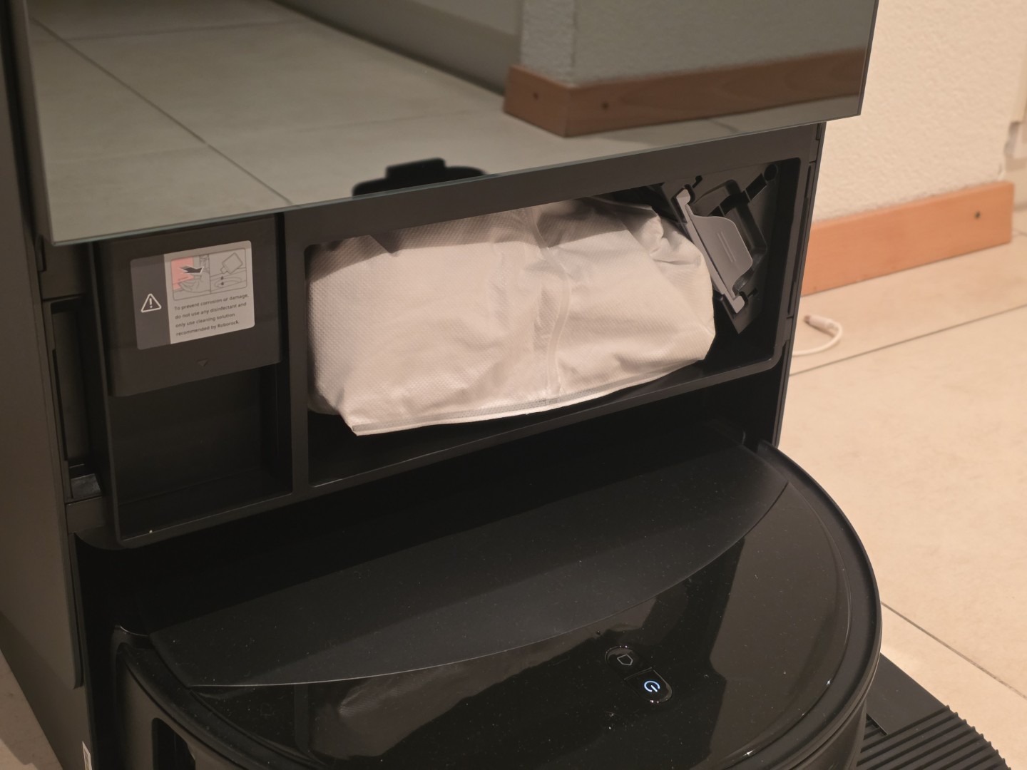 Una mancanza che non è la fine del mondo ma che sarà una sicura delusione per chi, tutto felice, spacchetta il robot per restare a bocca asciutta col detergente. Incomprensibile mancanza di classe, Roborock! Infine, la stazione stessa si autopulisce: un meccanismo interno combina un tergipavimento in gomma e un getto d’acqua a 80°C per scrostare e risciacquare la base di lavaggio. Questo non vi dispenserà dal pulirla di tanto in tanto tramite la apposita procedura, specialmente se l’acqua dei vostri rubinetti è molto calcarea, ma non dovremo per fortuna farlo troppo spesso.