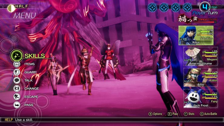 Oseremo dire che Shin Megami Tensei è una specie di Souls per i JRPG a turni. Pur vantando di un sistema di combattimento che ricorda, appunto, quello dei Pokémon e dei più canonici JRPG anni ‘90, non bisogna lasciarsi ingannare dallo scandire della “lenta” azione a turni. L’assenza di autosalvataggio e il sistema di combattimento studiato da Atlus, a dipendenza del livello di difficoltà scelto, farà spazientire anche i giocatori più pazienti. Basta infatti un turno per essere letteralmente spazzati via dal nemico, e perdere tutti i progressi svolti che non sono stati salvati, poiché il giocatore potrà riprendere la partita solo dall’ultimo checkpoint di salvataggio manuale.