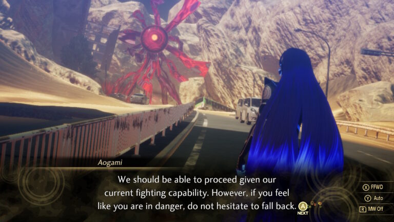 I primi minuti di gioco immergono immediatamente il giocatore nella narrazione della lore del gioco. Ovvero, la narrazione racconta di una guerra che da secoli imperversa fra Dio e i demoni, quest’ultimi privati dallo stesso della loro conoscenza. La conoscenza è tuttavia rubata dagli esseri umani dal giardino dell’Eden, i quali hanno mangiato il frutto della conoscenza offerto da un demone dalla forma di serpente. Ebbene, dopo questa premessa non particolarmente fantasiosa, la vera trama di Shin Megami Tensei V comincia nei panni di un giovane studente liceale. Eventi bizzarri occorrono quotidianamente in quel di Tokyo: le persone spariscono o muoiono inspiegabilmente, ma soprattutto, il nostro giovane protagonista viene improvvisamente teletrasportato in una Tokyo post apocalittica nella quale imperversano mostri di ogni tipo. Questi esseri, ovvero i demoni, si nutrono di anime umane nella speranza di rubargli la loro conoscenza. Tale brutta sorte sarebbe toccata anche al nostro protagonista, sino all’arrivo del Proto-diavolo Aogami, un essere misterioso che viene in soccorso del liceale per offrirgli i suoi immensi poteri e così combattere gli esseri oscuri. Dalla fusione del protagonista e del misterioso Aogami, nasce il Nahobino: un essere superiore capace di evocare e controllare altri demoni. Il protagonista Nahobino sarà dunque impegnato a comprendere il motivo dietro alla distruzione di Tokyo e le origini dell’invasione dei demoni.