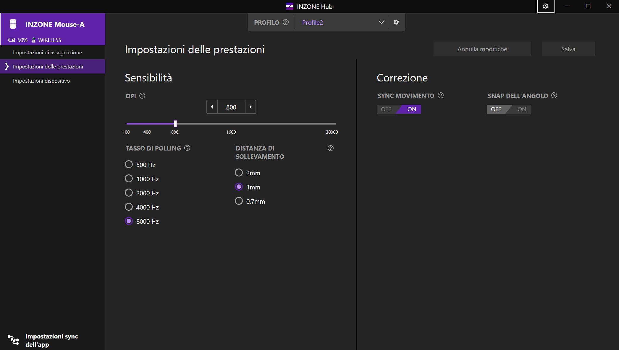 Il software di gestione, INZONE Hub, si rivela purtroppo l’anello debole della catena. Sebbene offra le impostazioni vitali come la regolazione dei DPI, la distanza di lift-off e il Motion Sync, l’interfaccia risulta scarna e meno rifinita rispetto ai software dei brand concorrenti.