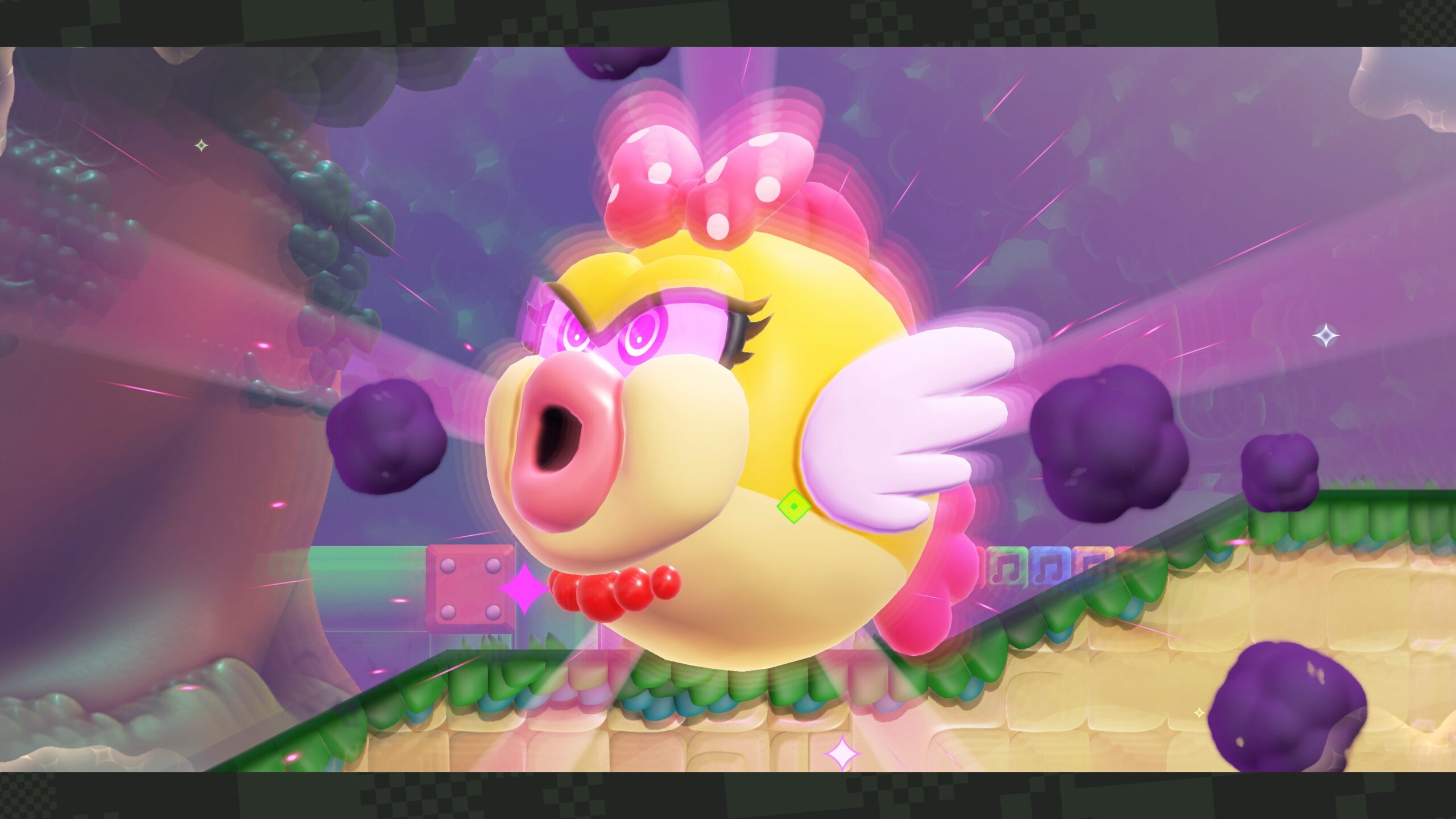 In termini tecnici, su Nintendo Switch 2, il titolo beneficia sensibilmente della nuova architettura hardware, garantendo una risoluzione nativa di 4K in modalità dock e un solido 1080p in modalità portatile. Grazie alla maggiore potenza di calcolo, il frame rate rimane ancorato a 60 fps granitici, eliminando ogni possibile incertezza anche nelle situazioni più caotiche con quattro giocatori ed effetti “Meraviglia” attivi contemporaneamente. I tempi di caricamento sono quasi istantanei tra il Parco Bellabel e i singoli livelli, mentre il supporto all’HDR esalta la vibrante palette cromatica del Regno dei Fiori, rendendo le animazioni dei personaggi e le trasformazioni ancora più fluide e dettagliate rispetto alla versione originale.