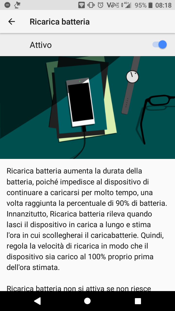 In combo con Qnovo, denominato ricarica intelligente, limita i cicli di ricarica della batteria preservando la salute della batteria nel corso del tempo. Fin troppi Xperia appartenente alla fascia Z3 o Z5 hanno subito una degradazione piuttosto importante nel corso di un anno, anno e mezzo di utilizzo. Con Qnovo la Rom Xperia ricarica intelligentemente il telefono, lentamente e secondo le abitudini dell’utente. Xperia XZ1 Compact raggiungerà automaticamente il 100% poco prima della sveglia mattutina.