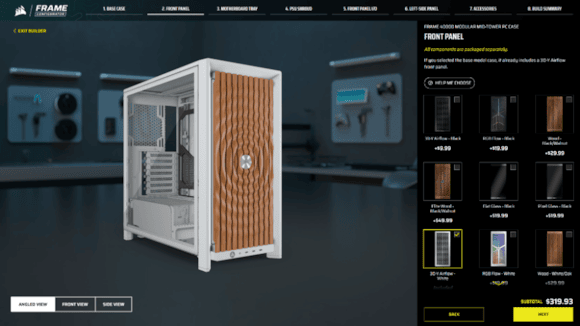 Parallelamente ai nuovi case, Corsair ha lanciato il Frame Configurator, uno strumento online che permette la visualizzazione in tempo reale di diverse combinazioni di componenti. La nuova linea di accessori modulari comprende cinque categorie principali: