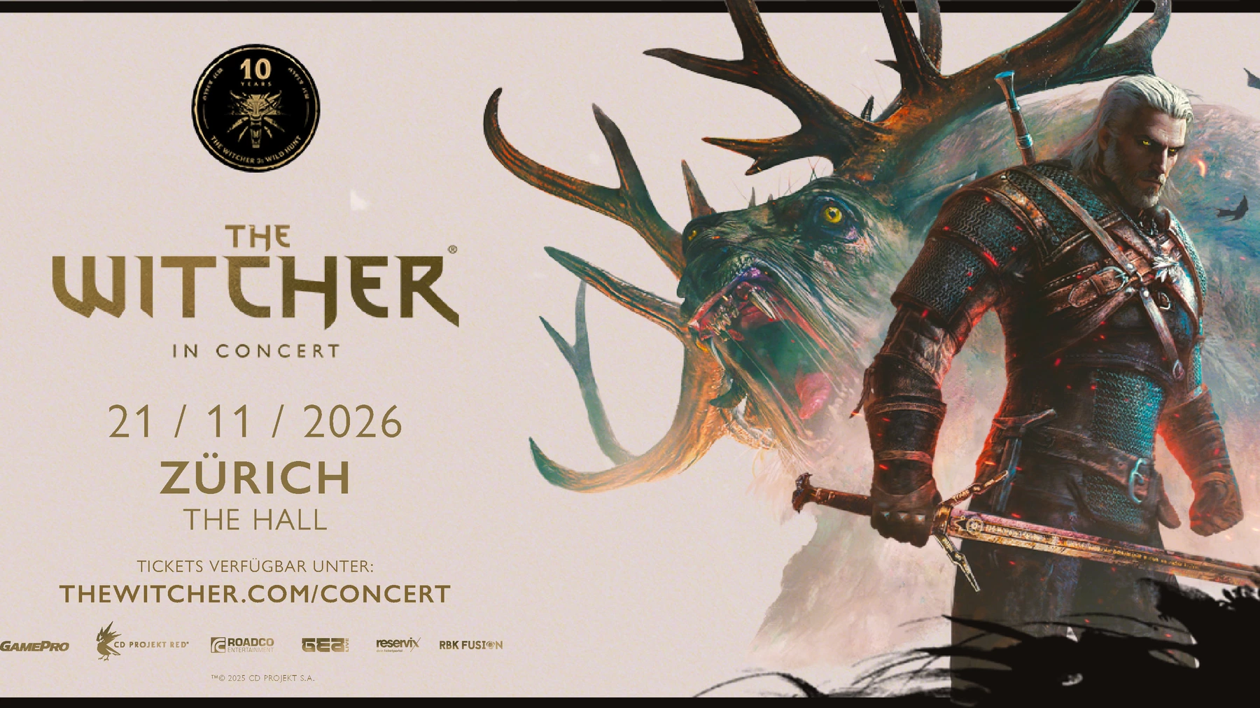Il concerto, organizzato da Gadget Entertainment AG, ripropone la colonna sonora del gioco con arrangiamenti speciali e l’accompagnamento di immagini e scene di The Witcher 3: Wild Hunt. Il tour europeo 2026, che celebra il decennale del titolo, partirà il 21 ottobre da Dublino e toccherà diverse città europee prima di concludersi a fine novembre.