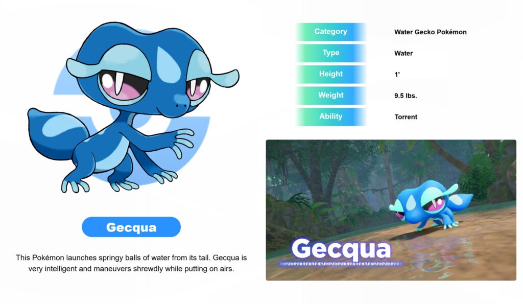 Il cuore pulsante della presentazione è stato il debutto dei nuovi starter, che hanno già diviso e appassionato la community: il piccolo uccellino di tipo Erba Browt, il vivace cucciolo di fuoco Pombon e l’elegante geco d’acqua Gecqua. Browt si distingue per un design buffo e intellettuale, mentre Pombon, ispirato a un volpino di Pomerania, è già diventato il preferito dei social per la sua estetica adorabile; Gecqua, invece, sembra puntare su un’evoluzione più raffinata e tattica. Le prime analisi suggeriscono che questi compagni saranno essenziali non solo nelle lotte, ma anche per interagire con l’ambiente circostante, sfruttando le loro abilità uniche per superare gli ostacoli naturali della nuova regione. Qui di seguito la presentazione completa: