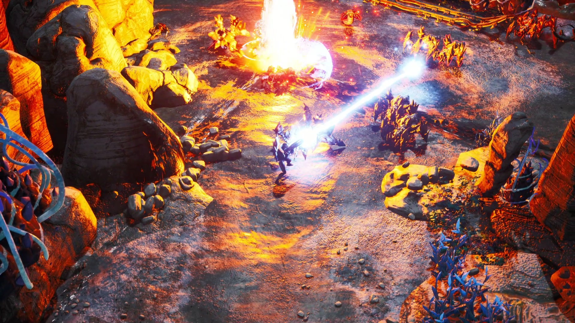 Nel caso concreto abbiamo provato il gioco circa una 15ina di minuti in solitaria, e siamo rimasti piacevolmente sorpresi per la fluidità dei comandi, del framerate e della difficoltà proposta. L’insieme dell’esperienza ci è sembrata solida e appagante, nel tragitto fra il punto di partenza e quello di arrivo (Boss finale) abbiamo incontrato una buona varietà di nemici e collezionato interessanti oggetti per il looting. Il livello del personaggio (che parte da 1) è resettato ad ogni nuova missione, in pieno stile MOBA, mentre il level cap è fissato a 10. Per ogni livello guadagnato ci è stato possibile sbloccare nuove mosse mediante i classici punti abilità, così da affrontare i vari mid boss e il boss finale senza troppi problemi. Conclusa la missione, ci è stato spiegato che il nostro eroe terrà tutto il loot guadagnato durante la stessa, con il quale sarà possibile modificare l’equipaggiamento aumentando di riflesso i punti vettore (simil ai punti luce di Destiny, che definiscono la forza complessiva del nostro personaggio).
