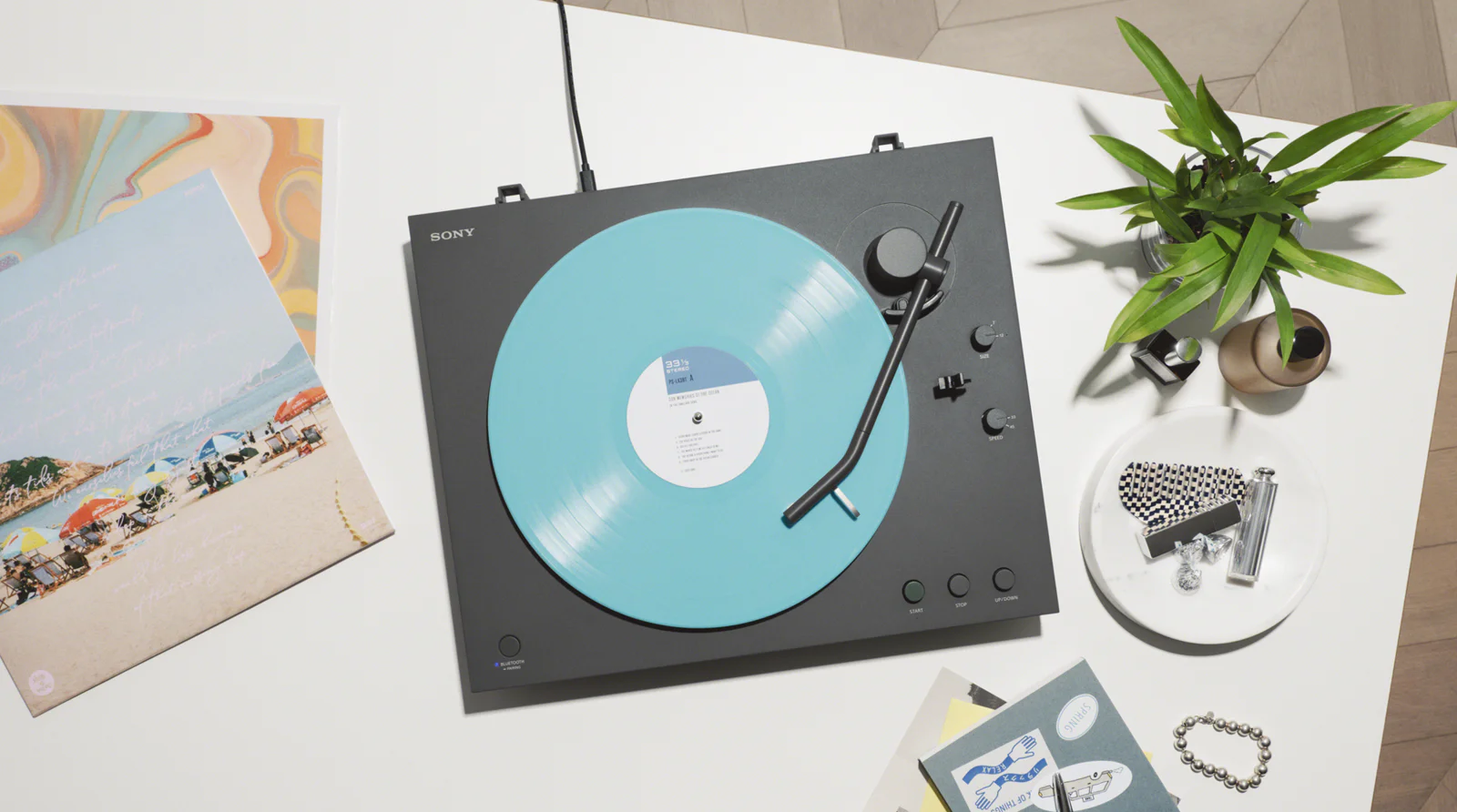 Il modello PS-LX3BT, con un prezzo di listino di 299 CHF, include un equalizzatore phono integrato e viene fornito con un cavo audio analogico per il collegamento a sistemi sprovvisti di ingresso phono dedicato.