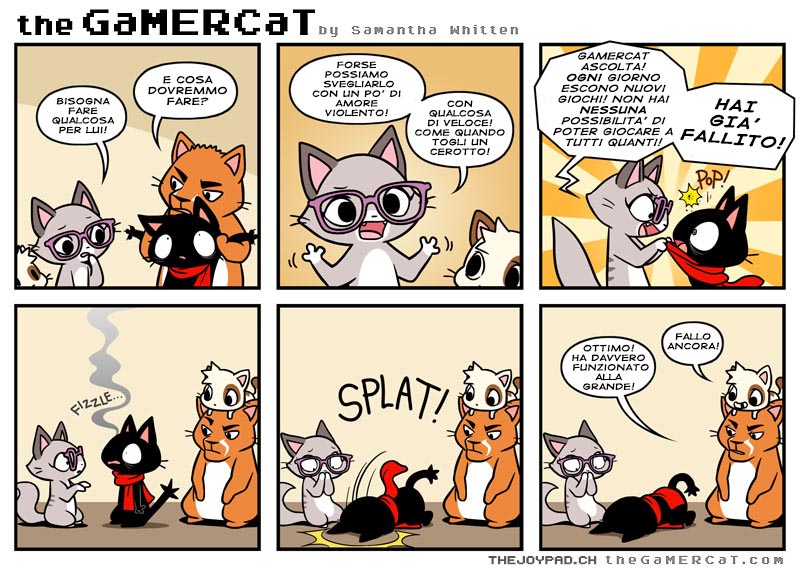 Trovate qui il sito ufficiale di The GaMERCaT, potete seguirlo anche su facebook oppure supportare Samantha grazie a Tapastic!