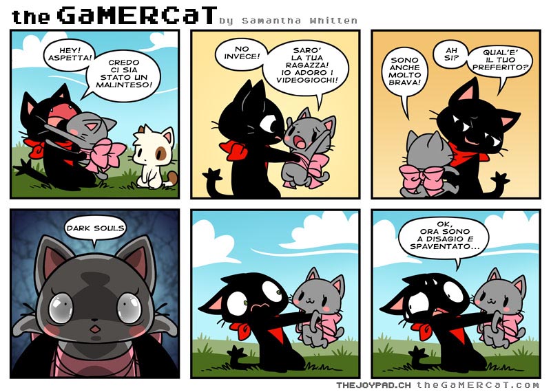 Trovate qui il sito ufficiale di The GaMERCaT, potete seguirlo anche su facebook oppure supportare Samantha grazie a Tapastic!